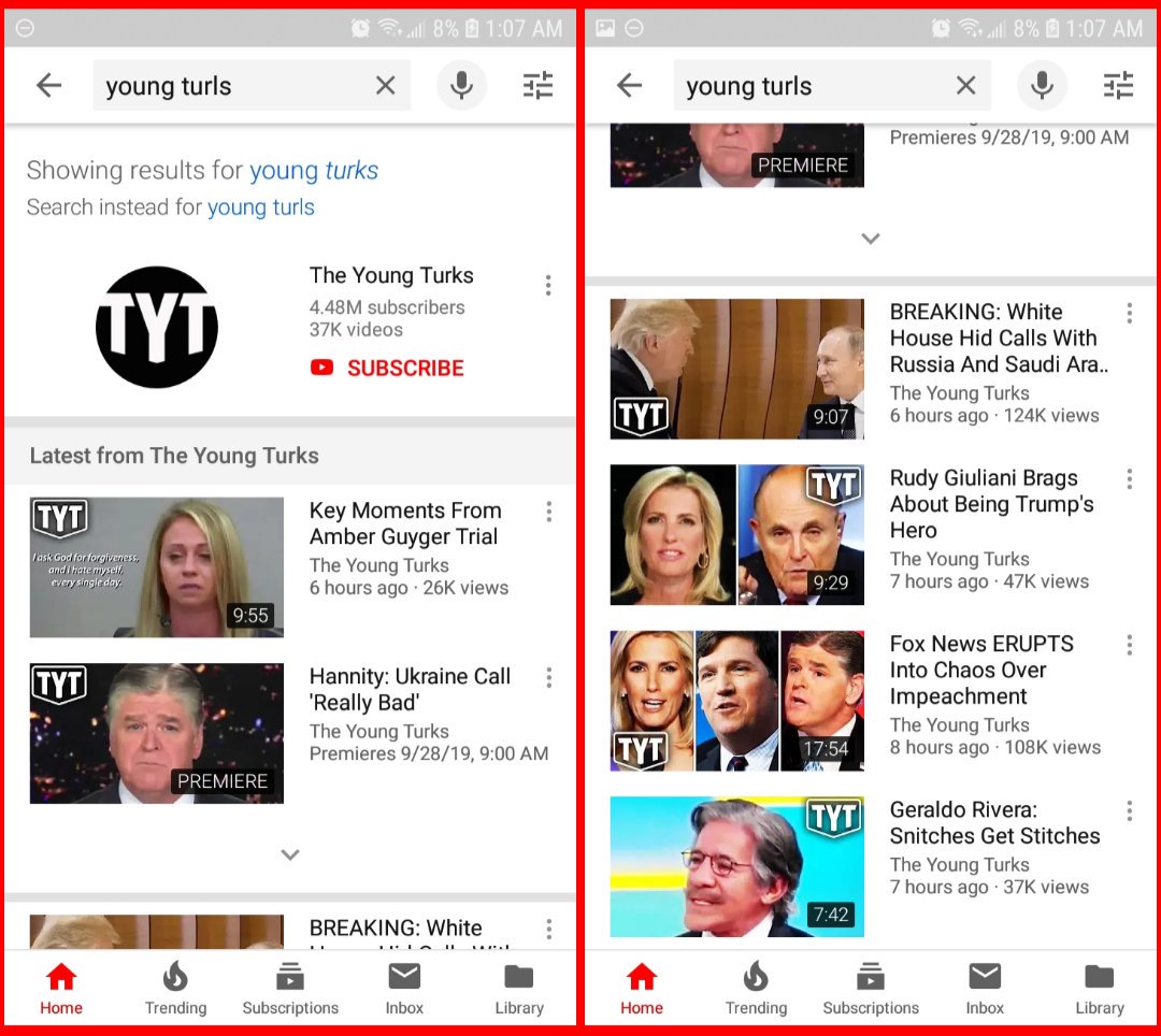 Ok, for comparison, I searched "young turls" (incomplete & incorrectly spelled on purpose) and got the channel box with their latest videos, and all the other top suggestions were vids from their channel too, and that's without any filters either. Somehow YT got that right 🤔pic.twitter.com/yvyXC3iTUN