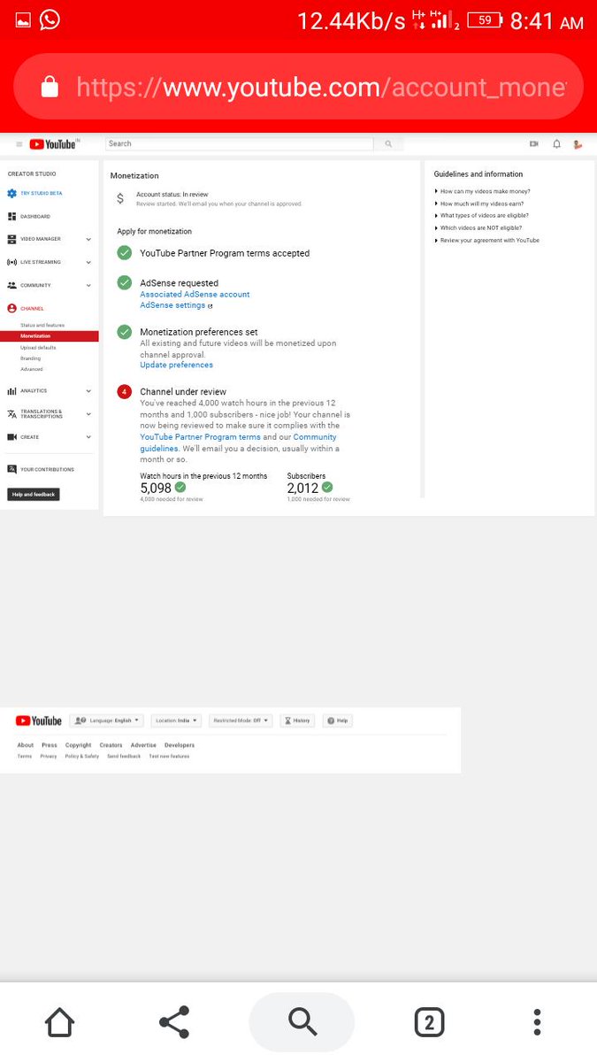 @YouTubeTeamNot Dear Team YouTube I have already completed 4k hour wachtime and 1k subscribe in previous 365 days and my channel is under review till one month but. monetization on is not enable. please guide us. My channel Link https://www.youtube.com/channel/UCbSbjiM-OY2pj_BLTT6ggug …
