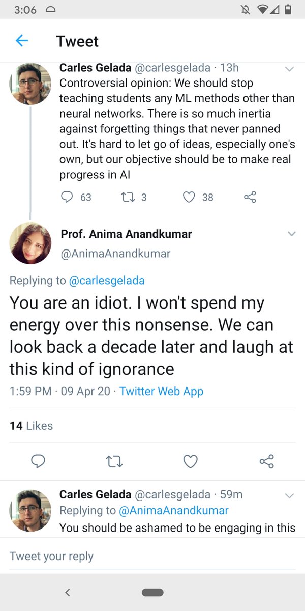 @AnimaAnandkumar@timnitGebru and others). If someone wants to sit in an echo chamber w/o considering differing viewpts, maybe Twitter isnt right platform for themThanks. Twitter will use this to make your timeline better. UndoUndo