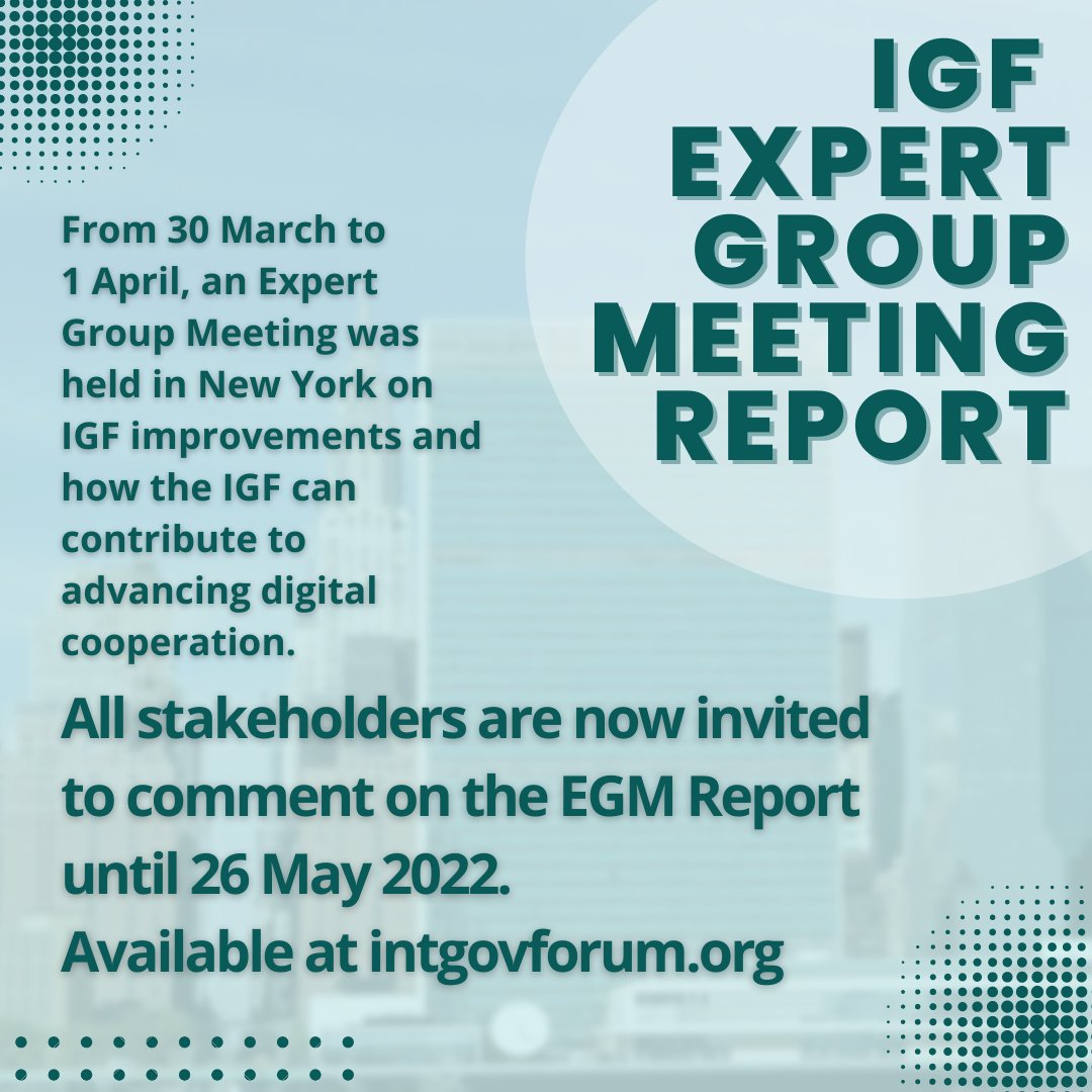 Last month, an Expert Group Meeting was held on IGF improvements and how the IGF can help advance