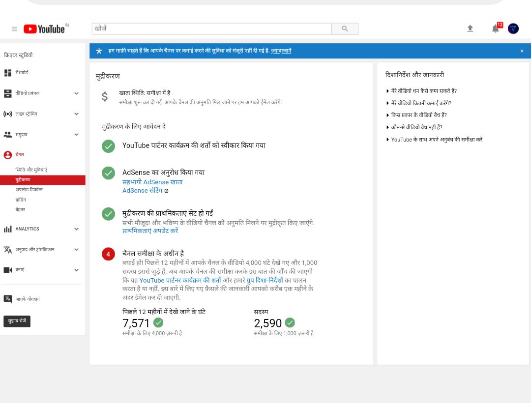 @TeamYouTube I have already completed 4k hour and 1k subscribers in previous 365 days and my channel is under review till one month but monetization is not enable https://www.youtube.com/channel/UCIB6YsqF76b_zKj3d6kh_Yg …pic.twitter.com/1yJf8P7YwE