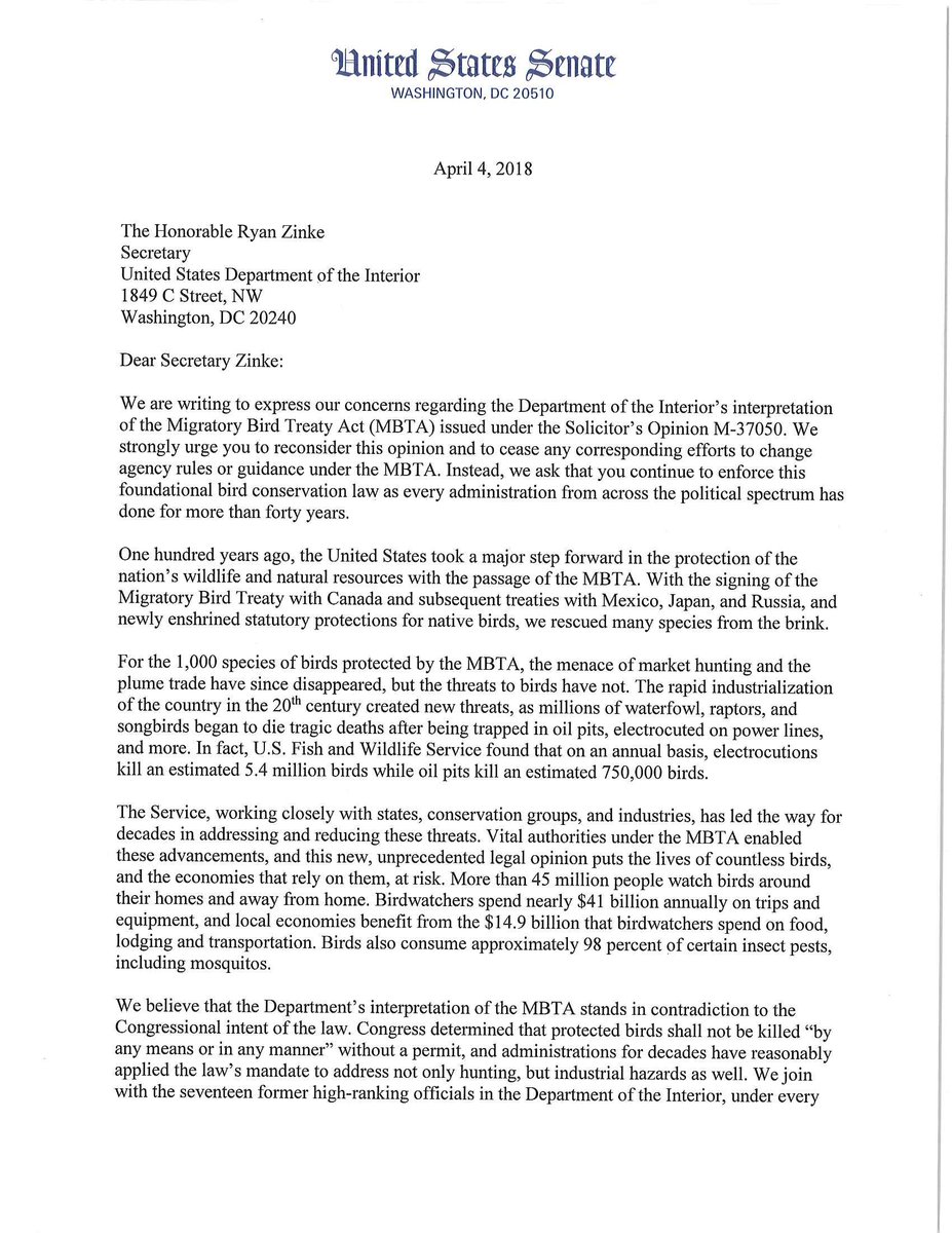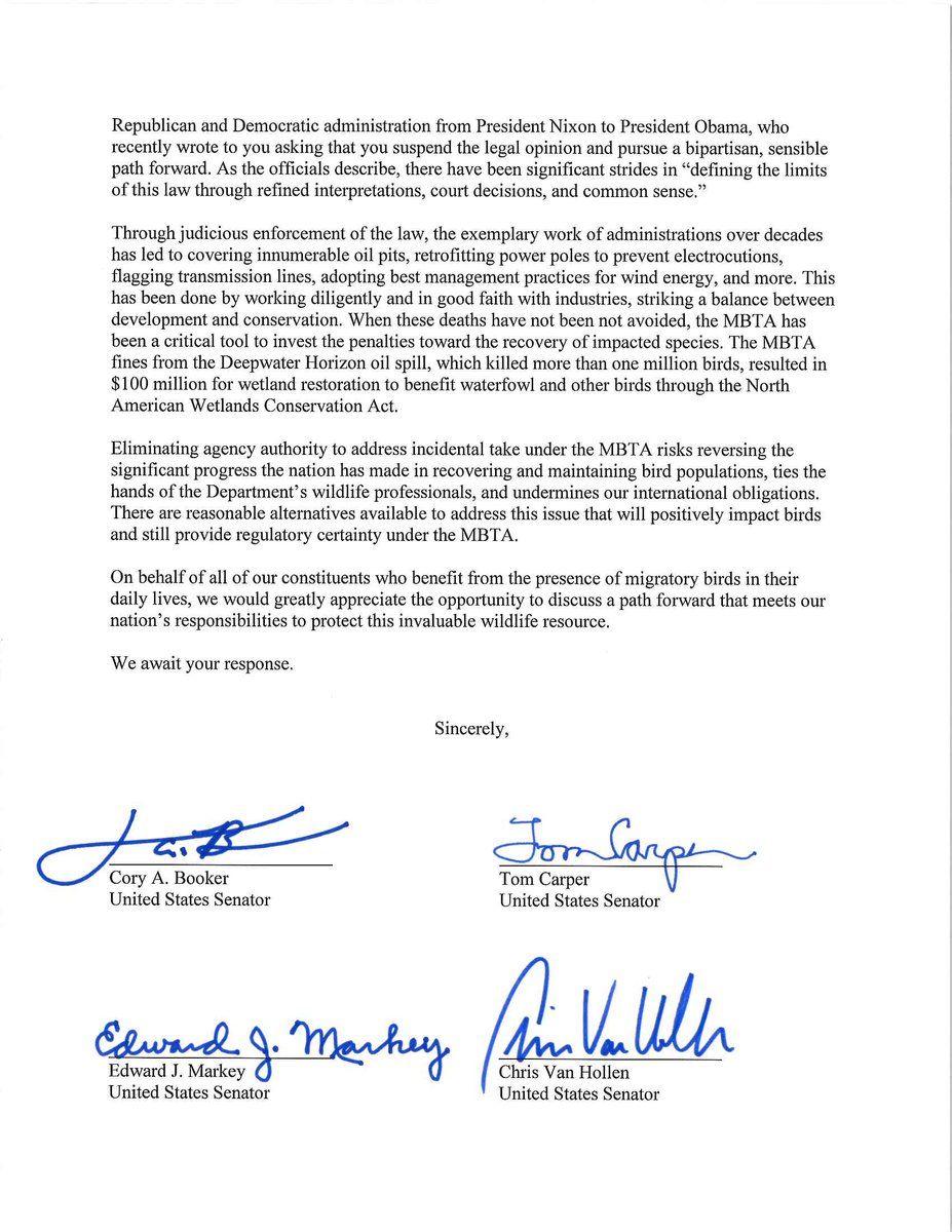 @CoryBooker and@SenatorCarper led a letter to@Interior@SecretaryZinke calling on him to#ProtectTheBirds and reinstate 100-year-old protections for migratory birds under the Migratory Bird Treaty Act and protect the multi-billion dollar bird watching industrypic.twitter.com/UBFjAzAutN
