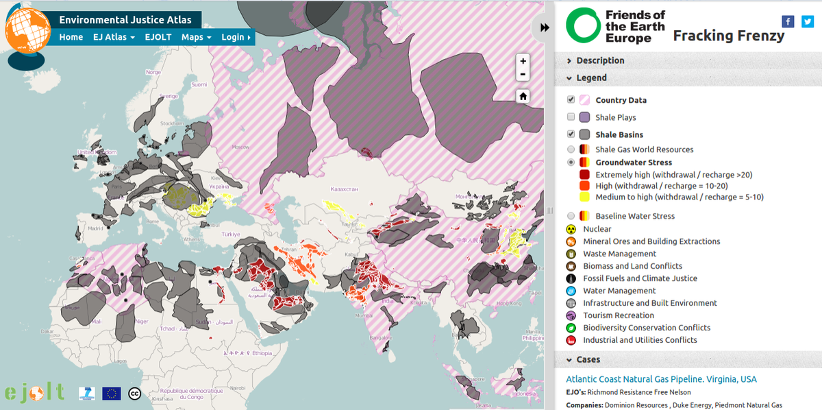 Amazing #EJAtlas map of global #fracking sites and conflicts by @FoEint- http://bit.ly/1JnA3zO pic.twitter.com/F3ElEiyyTL