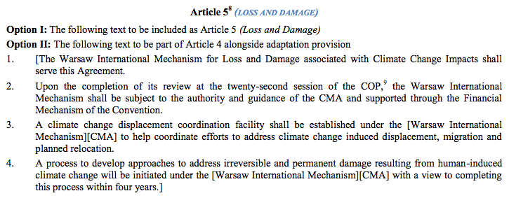 Loss & damage in the new draft Paris #COP21 text. Descended into mass of options.