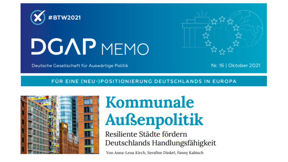 #Außenpolitik, doch#UrbanDiplomacy ist weitgehend unscheinbar.@AnnaLenaKirch,@SerafineDinkel & Fanny Kabisch erläutern, wie Bund & Kommunen gemeinsam#Resilienz fördern & Handlungsfähigkeit stärken können.#DGAPMemo#btw2021