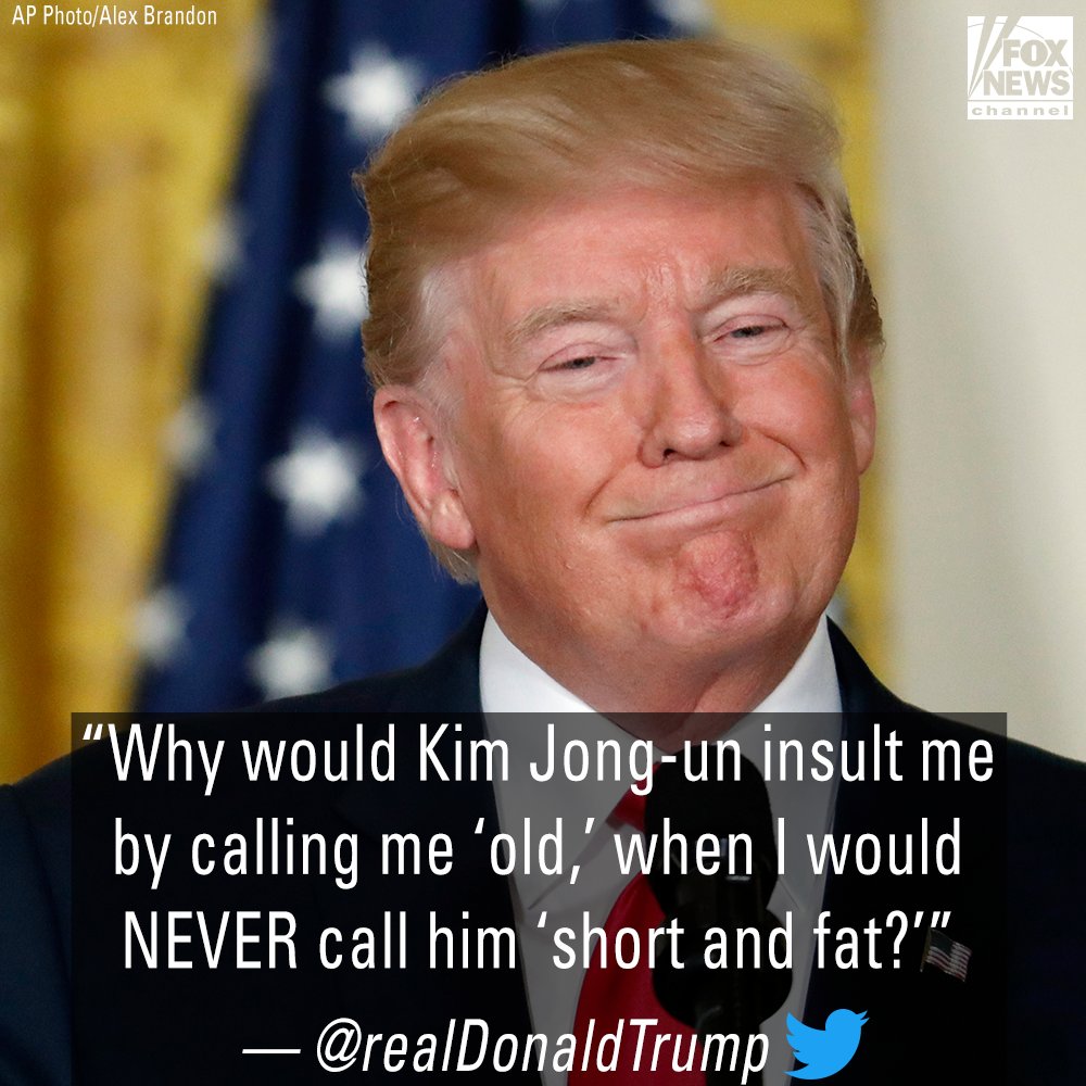 Trump taunts Kim: 'I would NEVER call him short and fat' http://fxn.ws/2zQ9qZw pic.twitter.com/NYZR0lbzAn