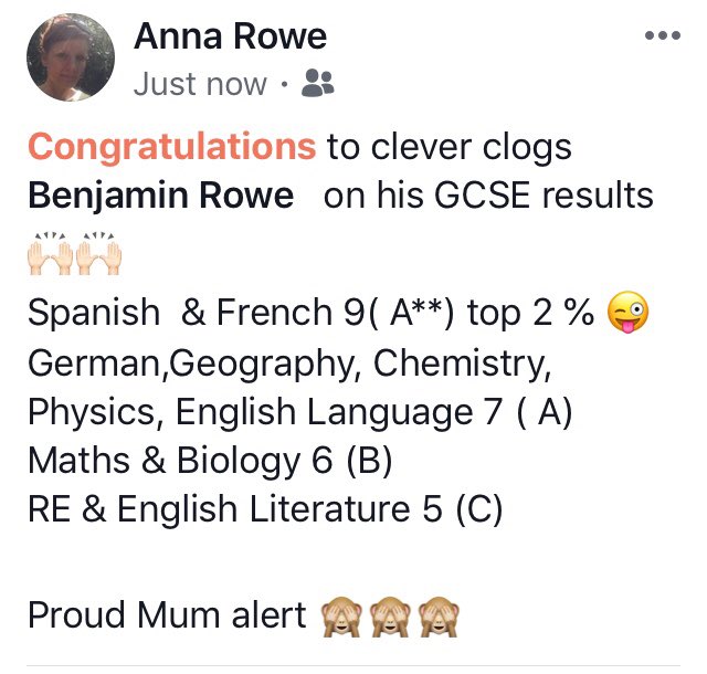 Proud of my big boy today! #GCSE results are in...Spanish, German 9 (A**) that’s top 2 % of the country