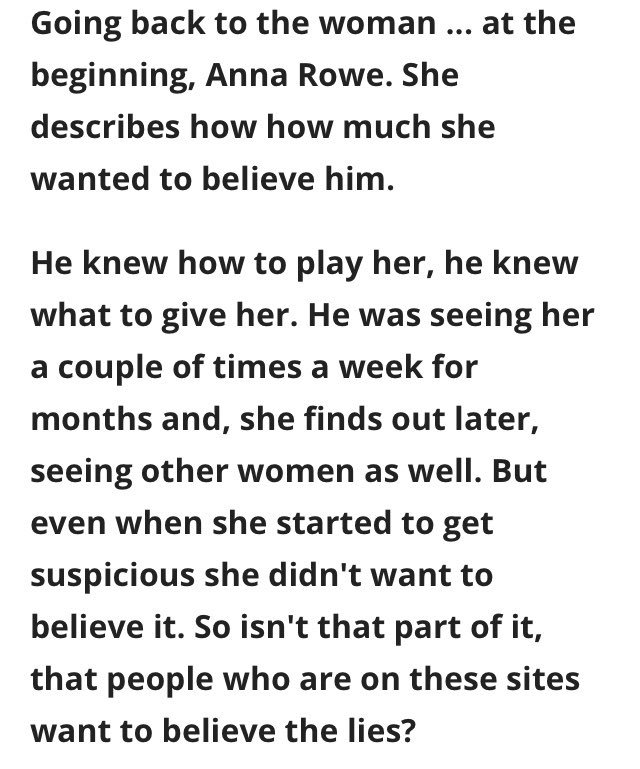 I’m a little confused as to this? I never knew he was lying to me. His profile was completely normal as was his ‘story’ completely believable. It was actually very close to the truth. I never received any ‘gifts’. Where has this info come from?pic.twitter.com/JRtljrw9EJ