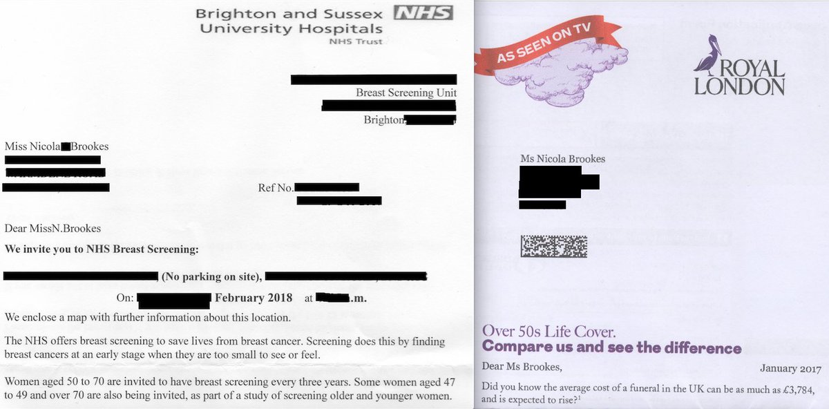 Both received in my mail today....Sod off Royal London! & breast cancer. I reach 50...and I receive more! death threats