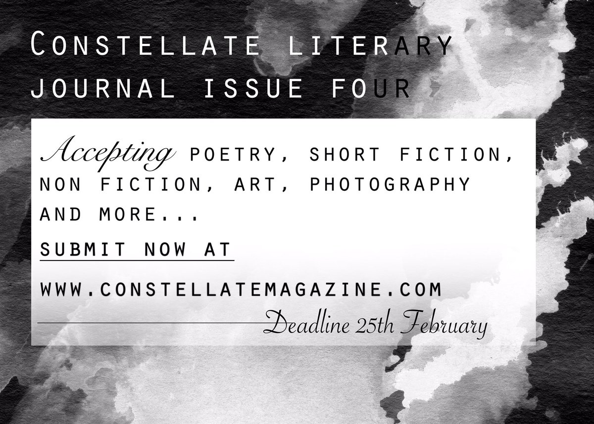 WE ARE NOW ACCEPTING SUBMISSIONS FOR ISSUE FOUR! (There is no set theme!) http://constellatemagazine.com <-SUBMIT NOW DEADLINE: 25TH FEB 2020