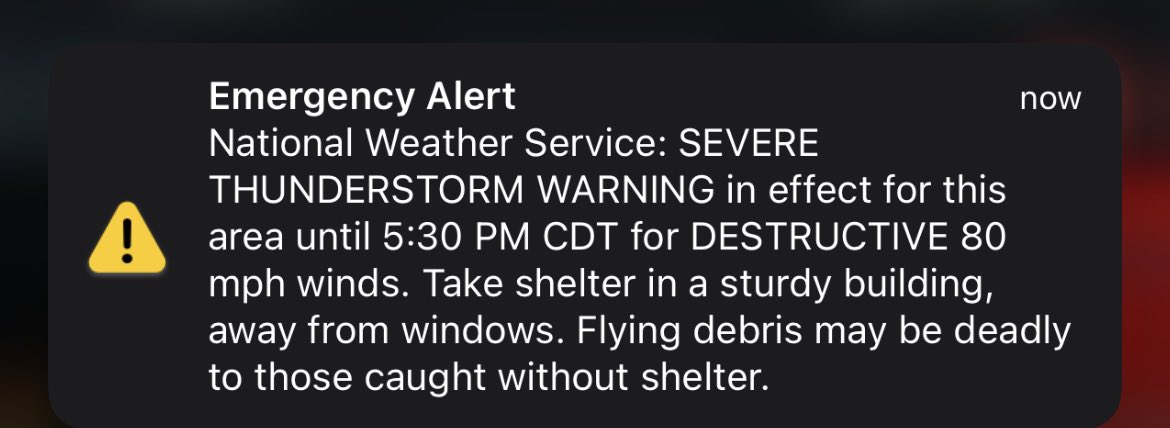 Severe Thunderstorm Warning including Sioux Falls SD, Brandon SD and Madison SD until 5:30 PM CDT. This destructive storm will contain wind gusts to 80 MPH!pic.twitter.com/vDiIkDgqzi