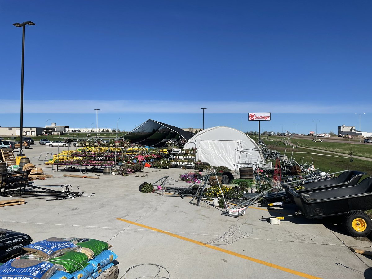 Starting my morning in Madison where a 97 mph wind gust was clocked last night during the storm. This is the Runnings right outside of town. Garden section destroyed, lots of smashed pots but the flower are okay.pic.twitter.com/gFkuNLS94y