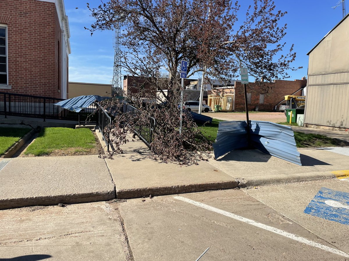 And there was metal roofing from a nearby garage in front of the post office. But mail was being loaded for delivery and I could see power on inside.pic.twitter.com/iviMgB6KOQ