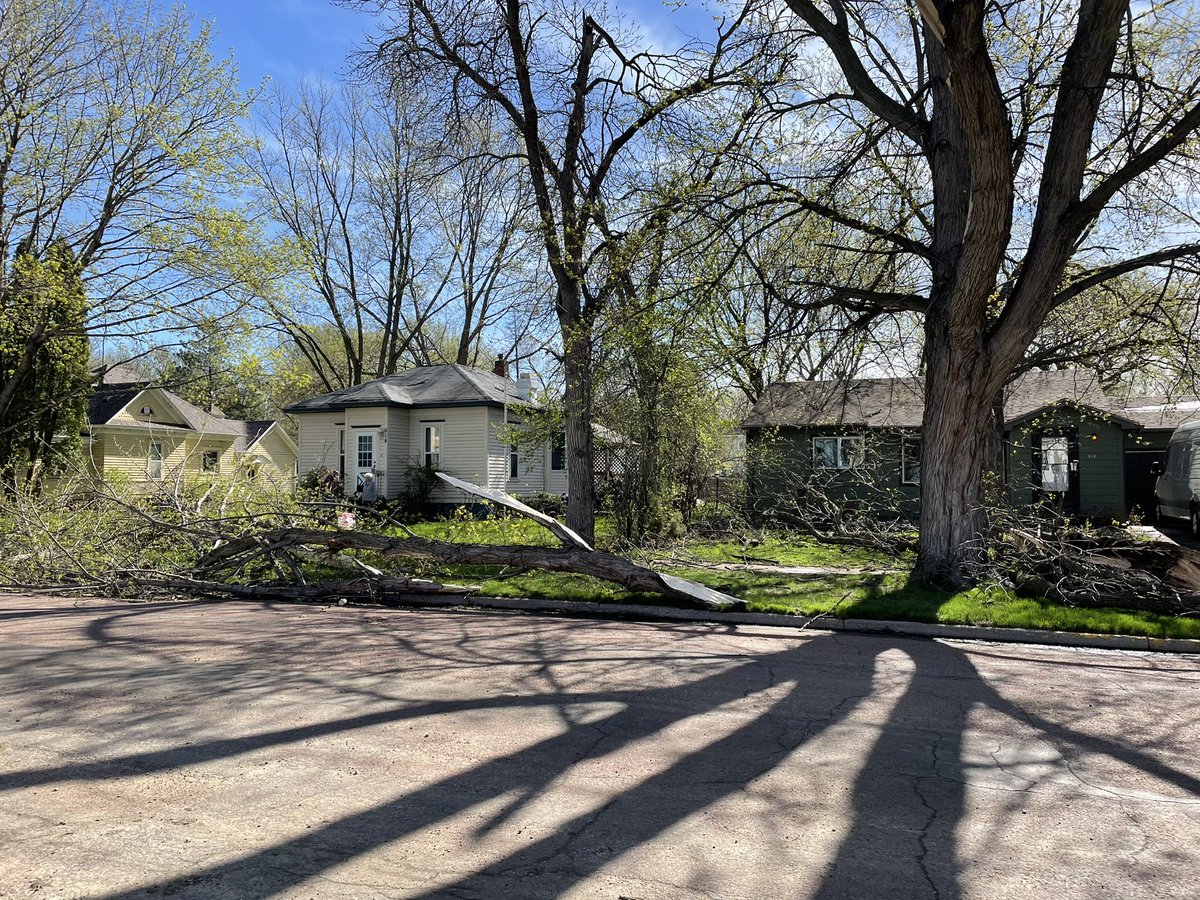 Pat Bulick’s house that escaped damage last night. The only thing is the tree that’s been in the back yard since she moved in during the 1960s was uprooted last night.pic.twitter.com/eCCOV4doyc