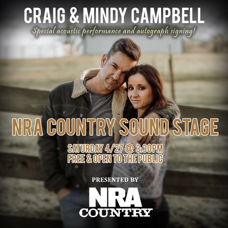 @NRA@AnnualMeetings#NRACountry Sound Stage,@craigcampbelltv and his wife Mindy will be here for a special performance and autograph signing! See y’all at 3:30 PM!!!