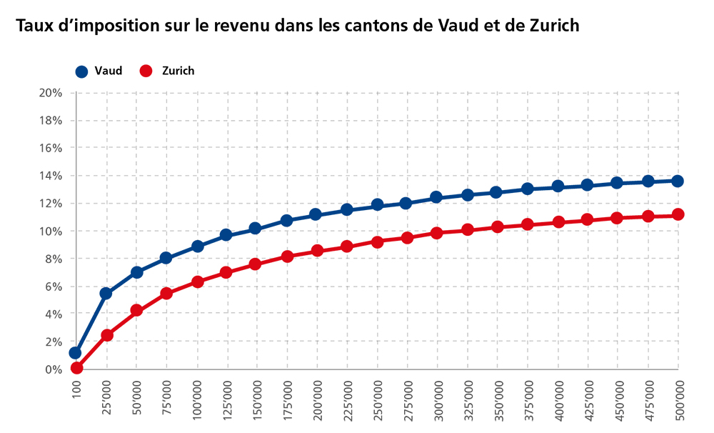 Quelles solutions pour faire baisser l’imposition sur le revenu des Vaudois? Si l’on observe le barème zurichois, on constate qu'il est toujours inférieur au nôtre. Travailler sur ce barême relève donc du courage politique! Plus d'info : https://lnkd.in/ds4vE49