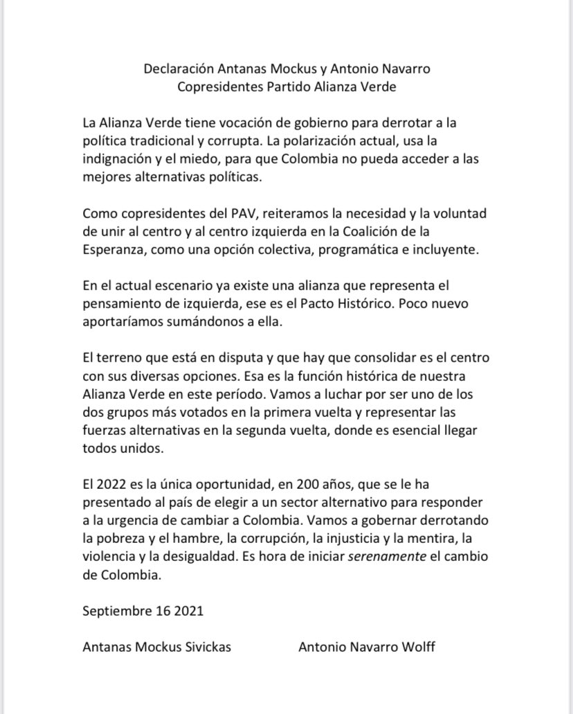 Un mensaje sensato y que aclara el camino.https://twitter.com/AntanasMockus/status/1438579496802787330 …