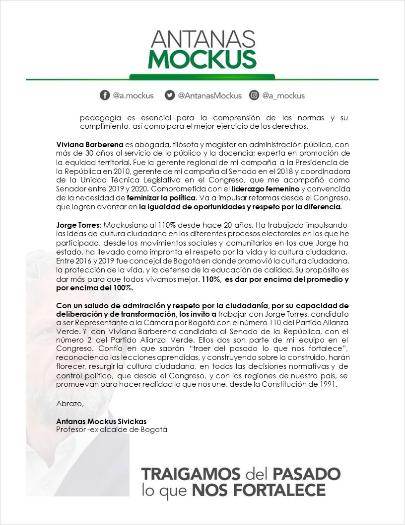 Somos el equipo Mockus Vamos hacer que el Congreso le sirva a Colombia, traigamos del pasado lo que nos fortalece, retomemos la
