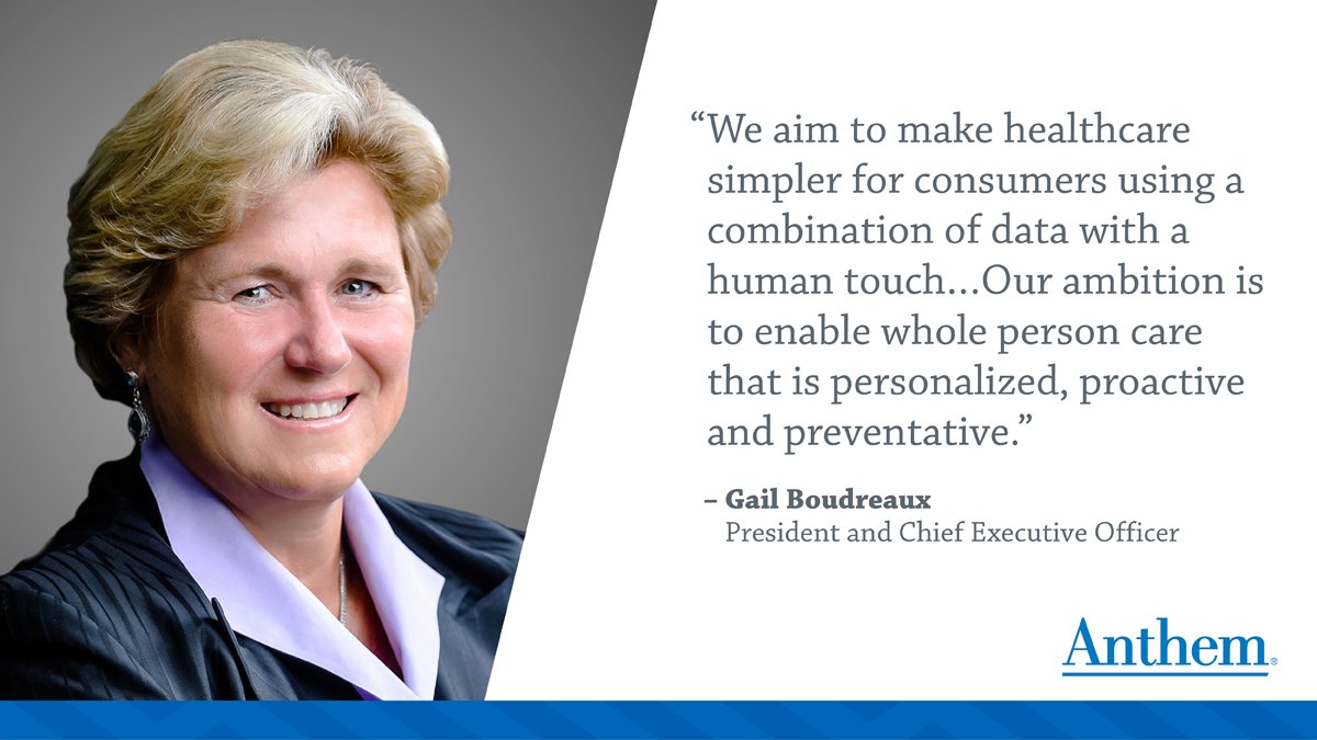 @AnthemInc CEO Gail Boudreaux. Read her post on LinkedIn and follow her as she shares perspective on topics that affect our company, our industry and the world at large. http://ow.ly/TPHV50xISNu pic.twitter.com/fT3tqas7Qo