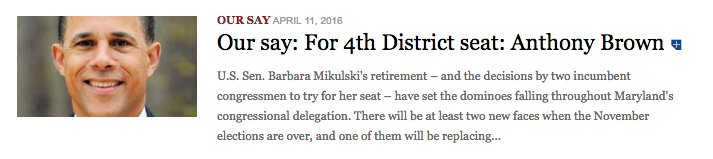 Proud to receive the endorsement of the @capgaznews Anne Arundel County: http://fw.to/ONDU2kV