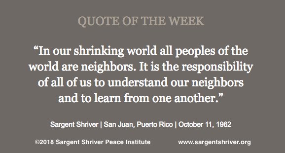 "In our shrinking world, all peoples of the world are neighbors. It is the responsibility of all of us to understand our neighbors and to learn from one another." -
