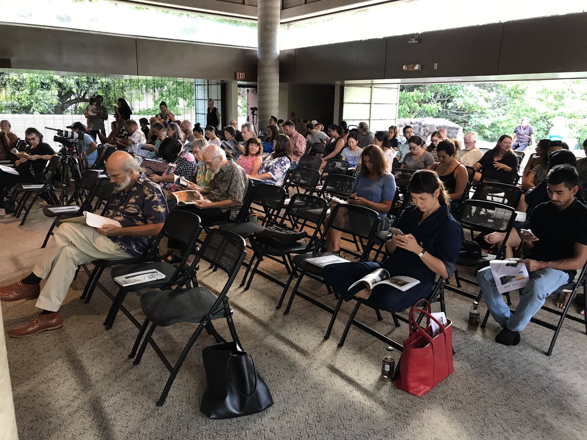 Only in Hawaii do people arrive at a public event, see carpet, and instinctively take off their slippahs.