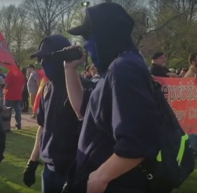16.) And here's Trevor counterprotesting the May Day celebrations in Boston. The bulge here lacks the L-distinct shape, but he's definitely armed with something like a large knife or pepper spray.pic.twitter.com/qaM4By9WIv