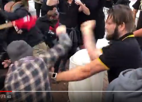 2.) Here he is attacking protesters alongside his "brothers" in the Proud Boys, an @SPLCenter designated hate group.