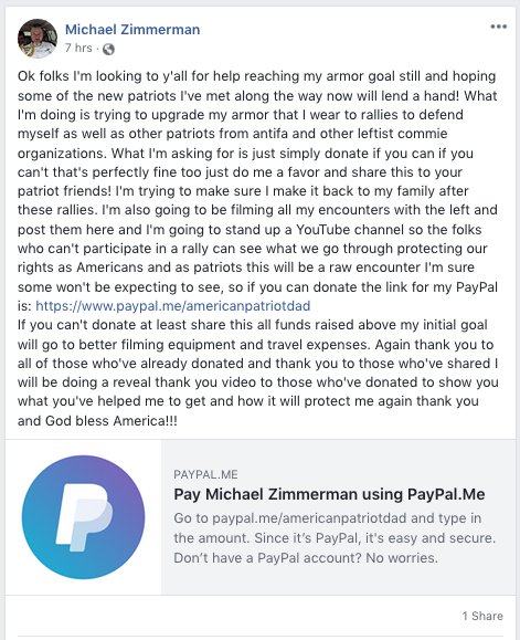 2.) He's also using his @PayPal to raise money for body armor "to ensure I bust a leftist commie."pic.twitter.com/q08diypx9s