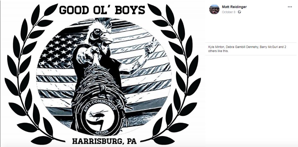 9) Tell them that Matthew Reidinger frequently posts violent imagery, bragging about Proud Boy attacks on people. The first photo below depicts the logo of "Anti-Communist Action," a neo-Nazi affiliated group.pic.twitter.com/Fs456lHJ3R