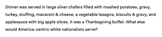 FASCISTS: what's our cultural food idk just put gravy on fucking everything [SOURCE: https://theoutline.com/post/4907/my-weekend-with-white-nationalists-convention-identity-evropa?zd=1&zi=sg432wfg …]pic.twitter.com/y3L0gHydPc
