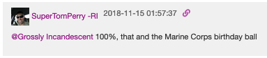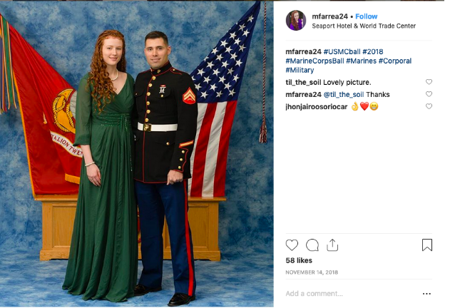 11/ In the Identity Evropa chats, "SuperTomPerry" says on November 15, 2018, that he went to the Marine Corps ball. And just look at this photo from the (now private) Instagram account of Meia Farrea.pic.twitter.com/Z5aqhB6EL9