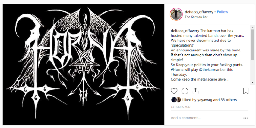 The neo-Nazi band Horna at the Karman Bar in Laguna Niguel, CA, is back on for Thursday. If you'd like to encourage the bar not to host neo-Nazis, you can call them at (949) 582-5909 on find them on Facebook here: https://www.facebook.com/thekarmanbar/ pic.twitter.com/EVSff6JYsx