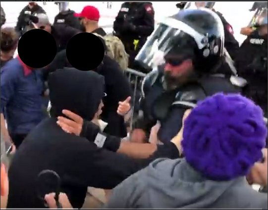 8/ The lead organizer for the 4/6 rally, Proud Boy Alan Swinney, is a hate group member with a long history of violence. This is Swinney strangling a protester in Providence on 10/6, after the Proud Boys crossed a police line to wade into the crowd and attack people. pic.twitter.com/iHXlK9sTAW
