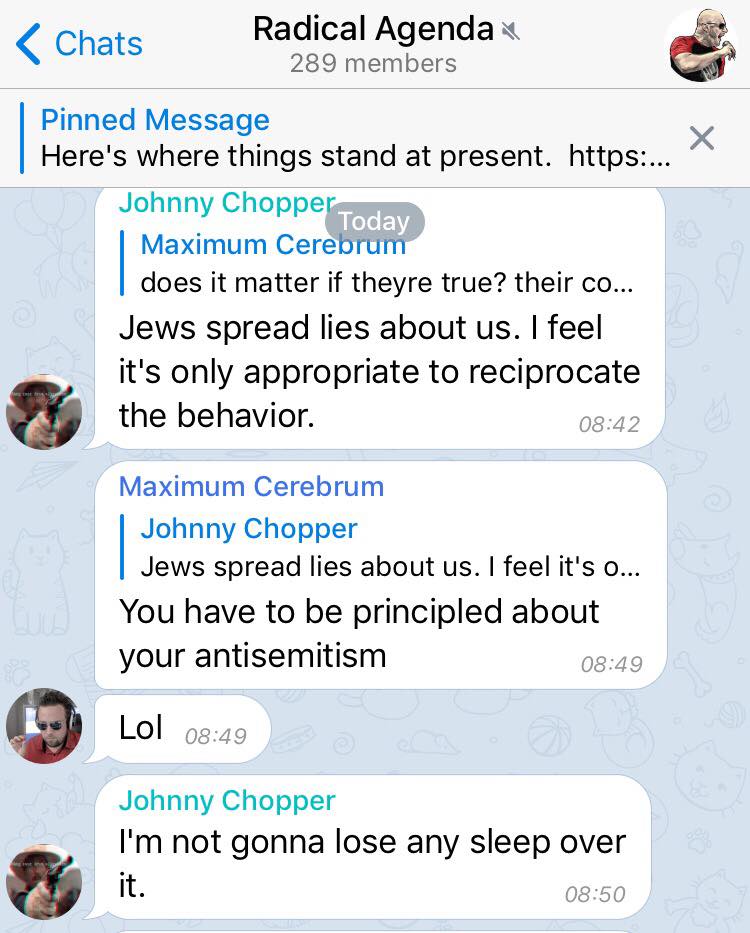 9/ Hey, @telegram-- why do you continue to host the Radical Agenda chat, whose members admit that they're literally just trying to get Jews killed?