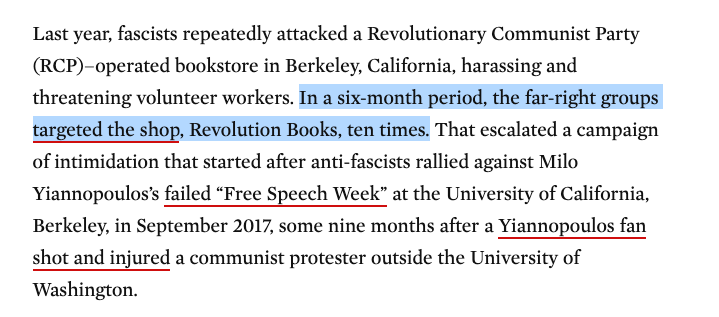 Absolutely correct. And Revolution Books has been targeted again and again. That is one. But that's not what the author of the piece meant. They meant a spate nationwide at bookstores. And that's not accurate.