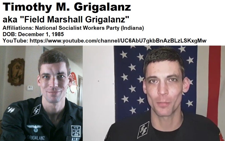7/ TImothy Grigalanz, of the Indiana National Socialist Workers Party. He's got a felony conviction, too, so he's not supposed to be handling guns. Yet he's appearing with an armed group.pic.twitter.com/kE3cXUO5VO