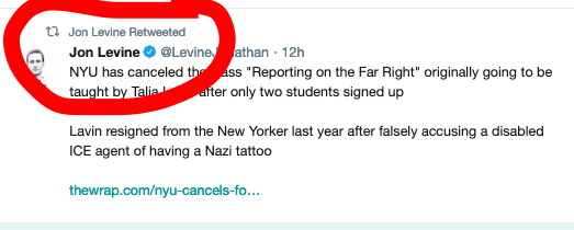 NYU has canceled the class "Reporting on the Far Right" originally going to be taught by Talia Lavin after only two students signed up Lavin resigned from the New Yorker last year after falsely accusing a disabled ICE agent of having a Nazi tattoohttps://www.thewrap.com/nyu-cancels-former-new-yorker-fact-checker-talia-lavins-journalism-class/ …