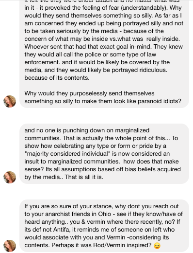 A surrogate for @SuperHappyFunA just suggested @VerminSupreme & I had something to do w the glitter/bible package SHFA received which "makes them victims of terrorists." They've been posting re Jussie Hoax/ involved FBI. Wanna talk about mistreating journalists? Fuck this shit. pic.twitter.com/wOWFNXDM1p