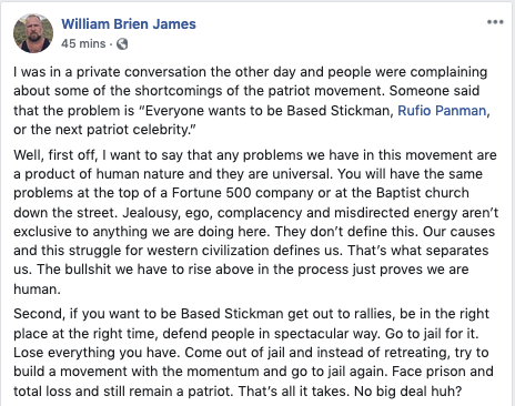 American Guard co-founder Brien James just telling people that they should go to jail to get famous #fedpostingpic.twitter.com/tE0nAOC6tG