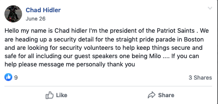7/ Hidler has noted on social media that he's heading up "Security" for the Straight Pride Parade.pic.twitter.com/wC4vBzH7Bk