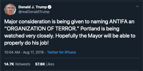 When a fascist “patriot” militia shows better restraint and bails because of not wanting to be associated with white supremacists who have confirmed attendance, but the most powerful man in the world gives his tacit endorsement.