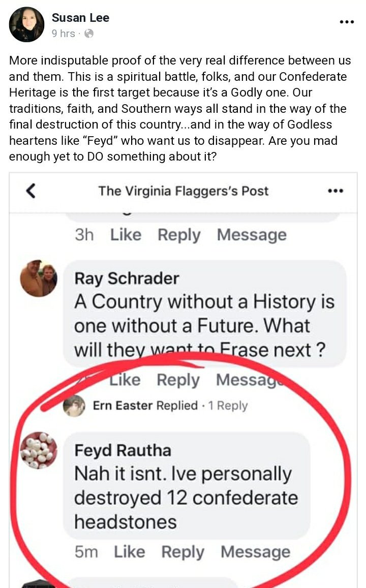 Today on Confederate Facebook, Sting from Dune is out here destorying confederate graves.pic.twitter.com/WO9wNvqtLN