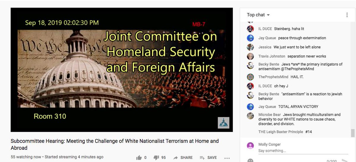 the congressional subcommittee hearing on white nationalist terrorism hasn't started yet but the white nationalist terrorists its about are having a lively discussion in the chat.pic.twitter.com/6pj70JGYLt