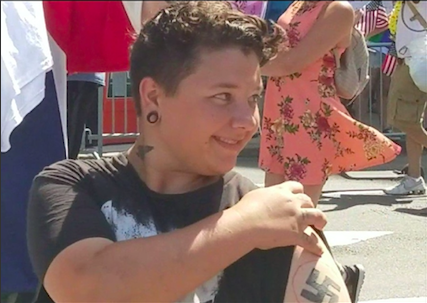12/ Super Happy Fun America also had Sarah Flynn, a member of the neo-Nazi National Socialist Movement, carrying a banner selling their t-shirts at the Straight Pride Parade. Note the swastika tattoo on her left arm.pic.twitter.com/Olsikf6ok7