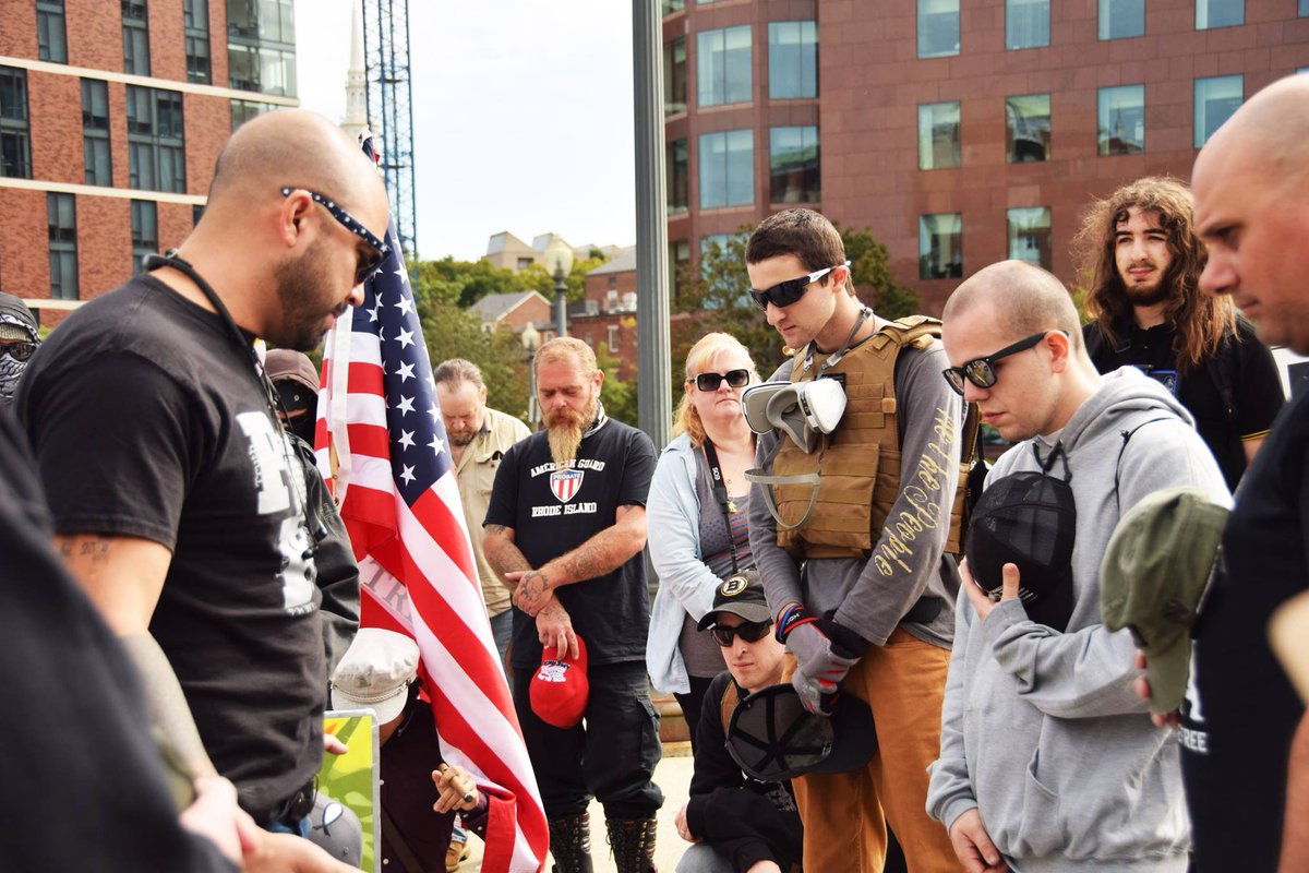 7/ Muscara was also at the 10/6/18 Resist Marxism rally in Providence, RI, where Proud Boys crossed a police line to attack protesters. In this photo, he's praying with Patriot Prayer leader Joey Gibson, who is currently facing felony riot charges in Portland.pic.twitter.com/FbNyM3OOxS
