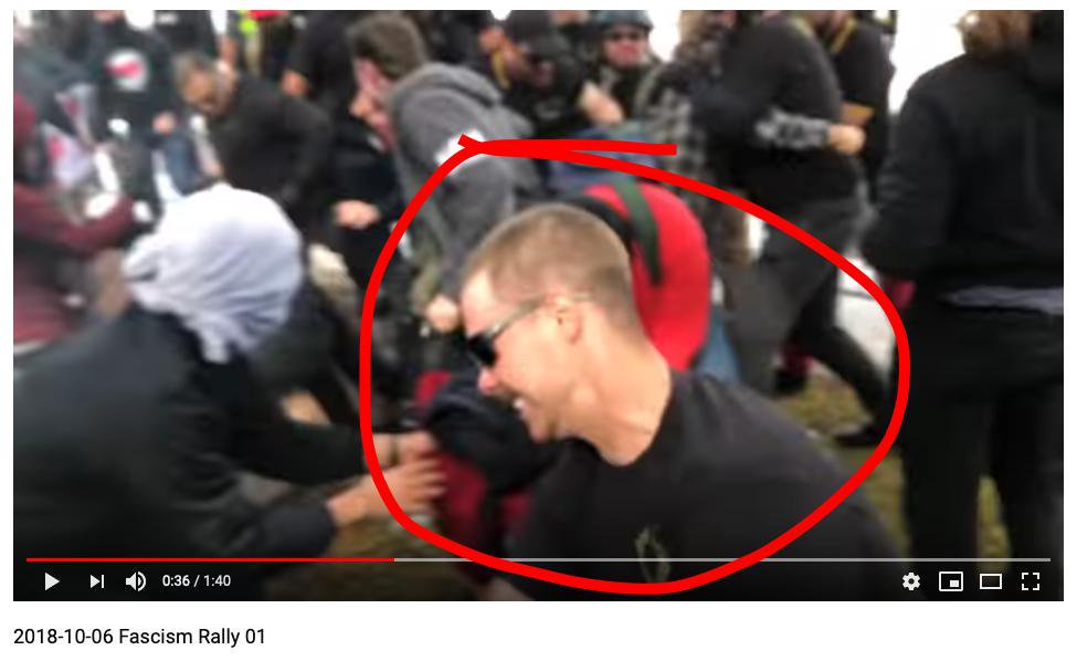 5/ That's no surprise, since Hare has a history of violence. Just the week before the 10/12/18 attacks for which he was sentenced, he was at the 10/6/18 Resist Marxism rally in Providence, where he crossed a police line to attack protesters.pic.twitter.com/DjZiyKDS7h