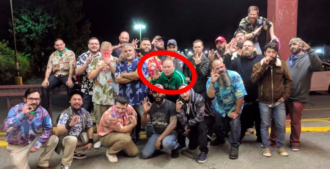 4/ Officer Wilcox attended meetups with the regional Proud Boys, including known violent offenders. Here he is with the Proud Boys. I've circled him in red.pic.twitter.com/5MZM43b4AW