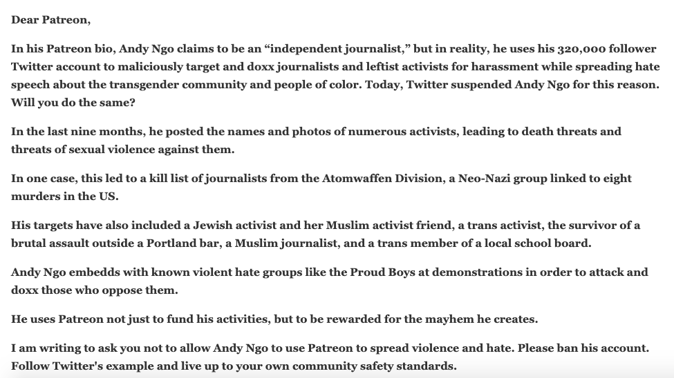 @PatreonSupport how come you platform and financially support people that are a threat to our community and provide kill lists to atomwaffen?Thanks. Twitter will use this to make your timeline better. UndoUndo