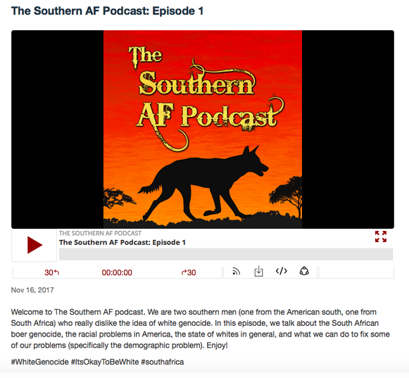 3/ Giovingo uses the “Southern AF” podcast to spread “white genocide” conspiracy theories. In his own words, “[Paul Nehlen] is our spirit animal.”pic.twitter.com/QjniBgZb9e